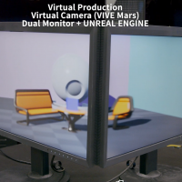 バーチャルプロダクションをマルチモニターで再現してみました。 モニターを直角に配置し、モニター内に広がるバーチャルを表示、カメラトラッキングはVIVE Mars モニターのベゼル部分が少し気になるが、何とか再現している。 …
